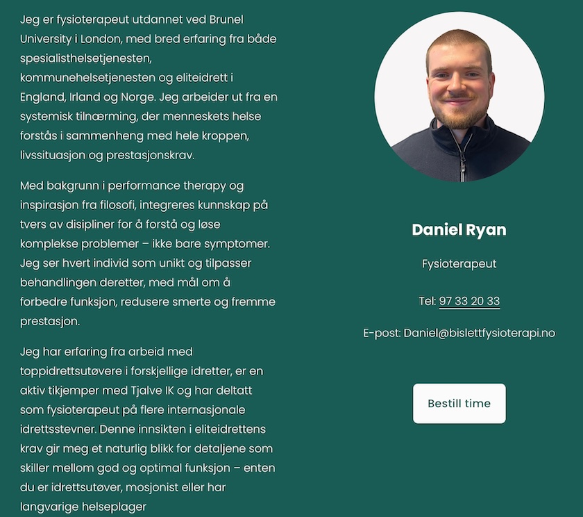 Deltakere får 20% rabatt på førstegangskonsultasjon hos han på Bislett Fysioterapi.